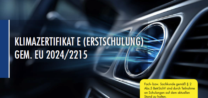 Ab März 2027 sind Betreiber und Hersteller von schweren Nutzfahrzeugen, Bussen, Agrar- und Baumaschinen sowie Schienenfahrzeugen und Kühltransportanlagen verpflichtet, wiederkehrende Dichtheitskontrollen durchzuführen. Das eröffnet für viele KFZ-Werkstätten, die im Nutzfahrzeugsektor tätig sind, ein neues Geschäftsfeld. Das Sachkundezertifikat E berechtigt den Inhaber die Durchführung von Dichtheitskontrollen an allen mobilen Klimaanlagen und Wärmepumpen, sowie die gesamte Palette der Transportkühlung.