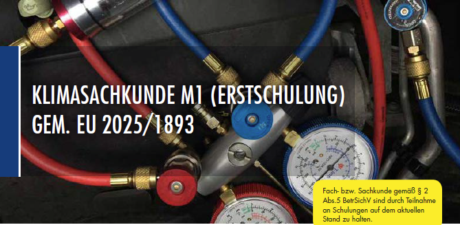 Die Sachkundebescheinigung M1 berechtigt den Inhaber die vollumfängliche Durchführung von Wartung und Reparaturarbeiten inkl. Dichtheitskontrollen an mobilen Klimaanlagen und Wärmepumpen. Der Inhaber ist berechtigt, fluorierte Kältemittel in der EU zu erwerben.